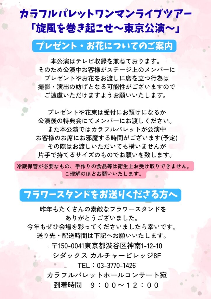 11/22 ワンマンライブツアー東京公演プレゼントについて